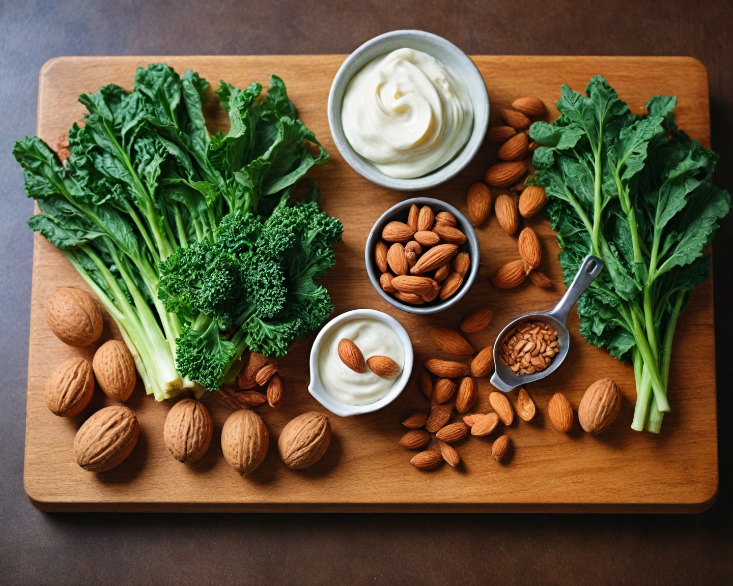 Vegetais de folhas verdes: Espinafre, couve e brócolis são boas fontes vegetais de cálcio. Eles também oferecem uma variedade de outros nutrientes benéficos à saúde.